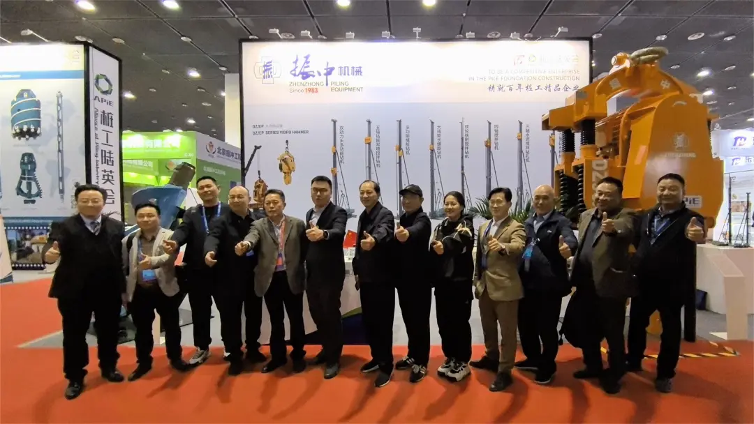 展會現場,振中機械攜DZ90A振動錘與擴底鉆頭強勢亮相,獲多方關注,吸引不少客戶前來咨詢。DZ系列振動錘歷經四十年技術迭代更新,是目前國內應用廣泛的樁基礎施工設備;擴底鉆頭搭配靜鉆根植樁鉆機,聚焦綠色能源與低碳發展,引得業內專家和客戶駐足。此外,通過多個產品案例和設備模型,生動展示了公司研發生產綠色樁基礎設備的現代化綠色設備生產商風貌。