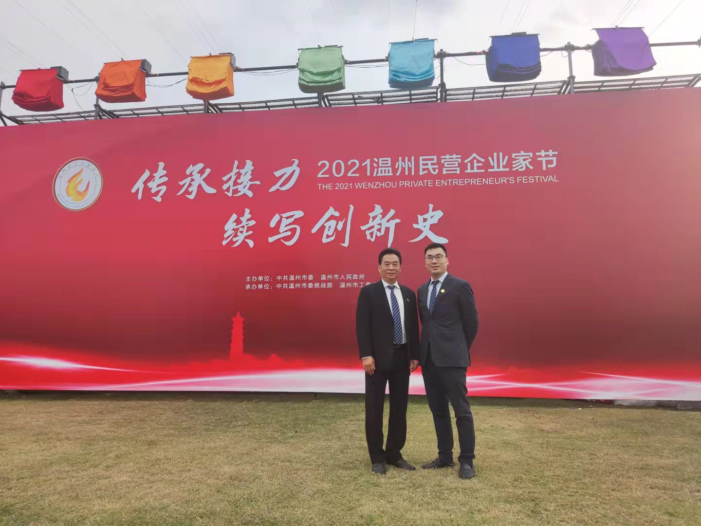 我公司曹光夏董事長(zhǎng)、曹高峻總經(jīng)理父子檔出席“溫州民營(yíng)企業(yè)家節(jié)”。