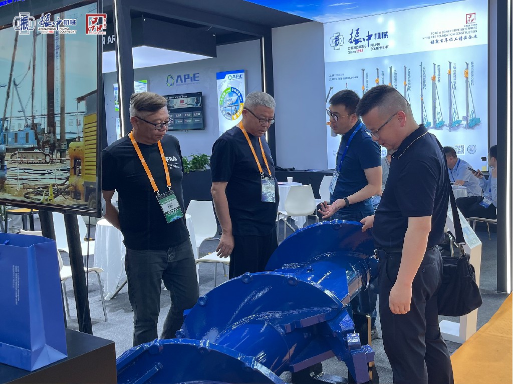 展會盛大,展商眾多,觀眾熱情。走進W4展館,來到41B展位,映入眼簾的是“振中機械”四個大字,現(xiàn)場咨詢人員絡繹不絕,工作人員一一接待,基于完美的服務態(tài)度,完備的知識儲備,完善的產品類型為客戶詳細介紹,場面火熱。此次展會咨詢次數(shù)榮登榜首的是“多軸水泥攪拌鉆孔機”,是一款有自主知識產權的新一代大型步履產品。能適用于多種樁基礎施工,尤其能滿足深基礎施工中廣泛采用的 SMW 工法地下連續(xù)墻施工工藝。是高速公路、橋梁港口、碼頭、地鐵車站和高層建筑中地下樁基礎施工的理想、高效設備。