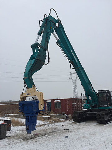 該型號振動錘如需打12-15米樁,需要根據挖機情況改裝大小臂